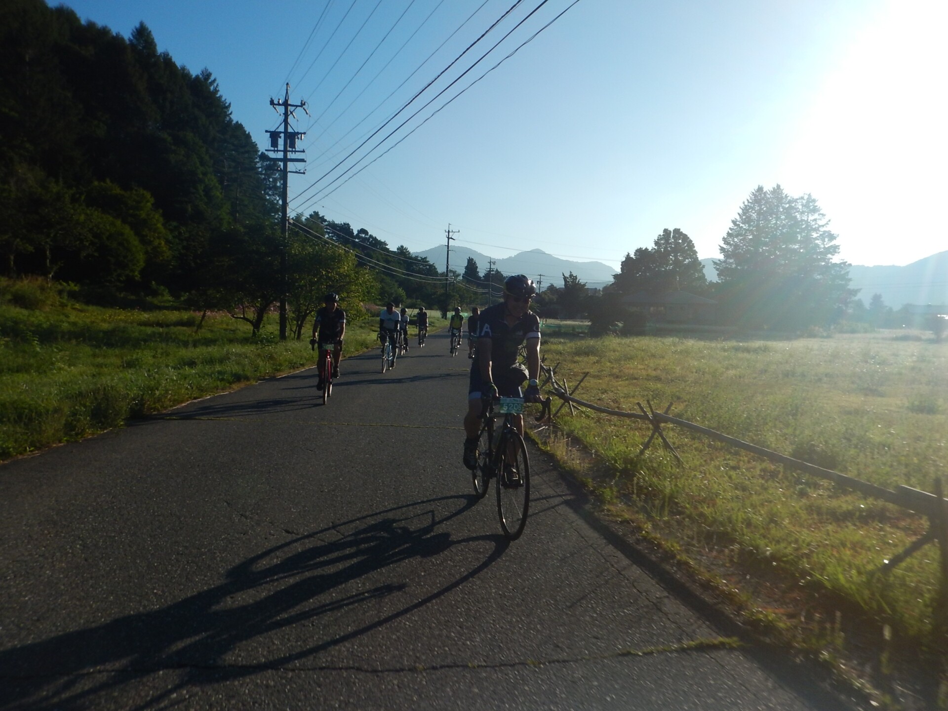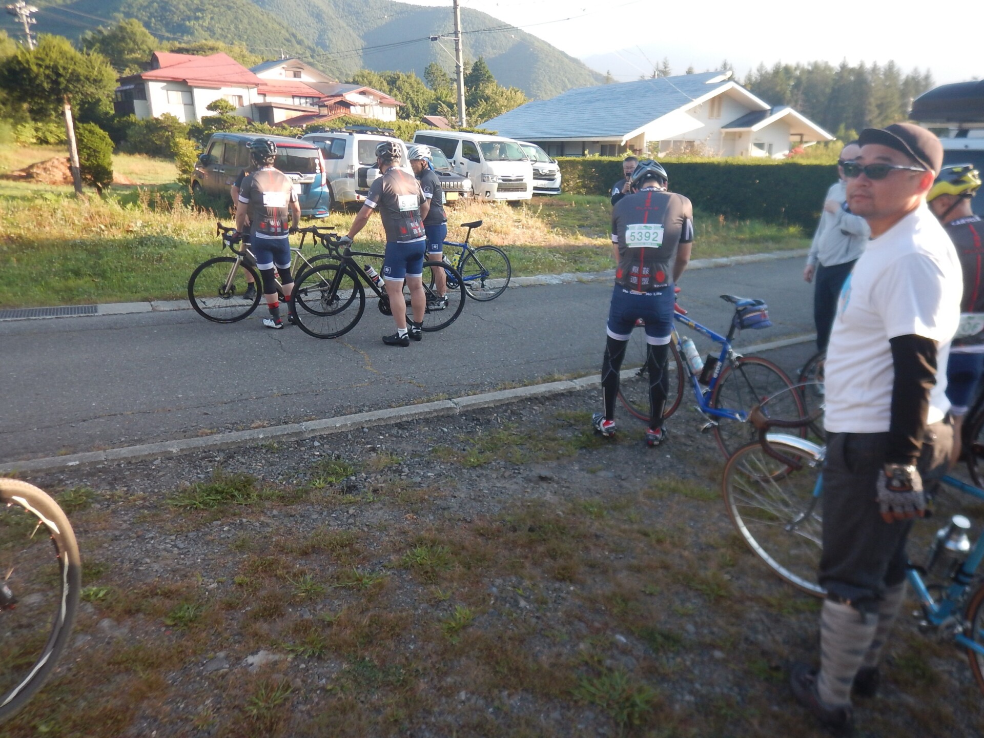 乗鞍ヒルクライムの朝は、呑みすぎてちょっと重い頭で明けた。私は出場しないので気楽なものだが、参加する仲間たちと5時前には食堂に集まった。