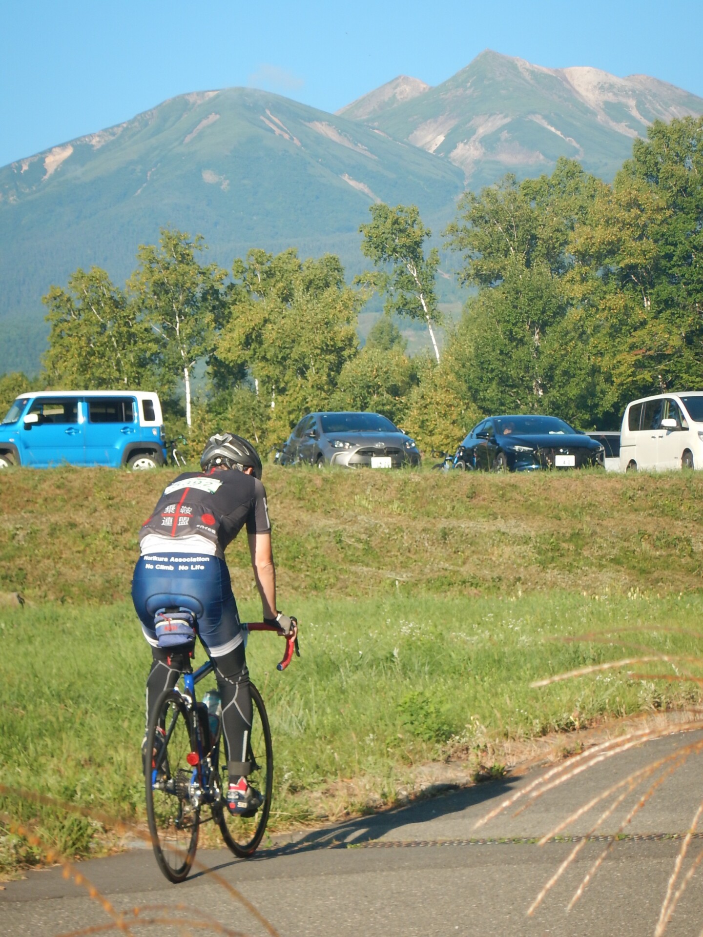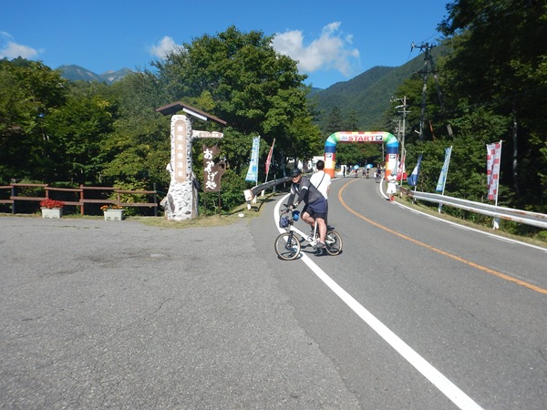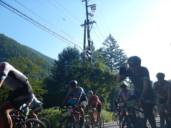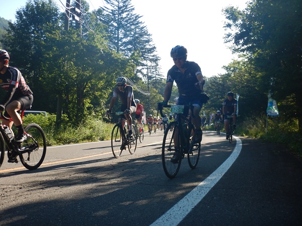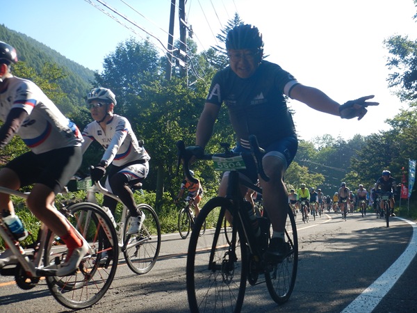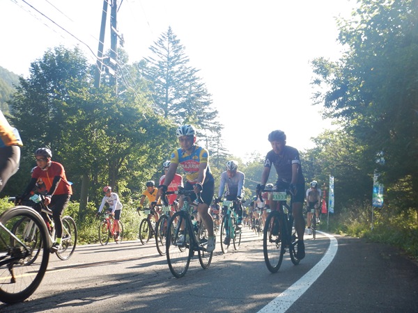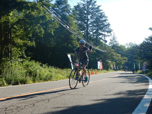 いがやスキー場跡のつづら折り区間はかなりの激坂だが、出場者のスタート地点が私のゴール地点なので、脚力を出ししみする必要はない。はあはあ言いながらペースを上げ何組かの仲間を追い抜いた。