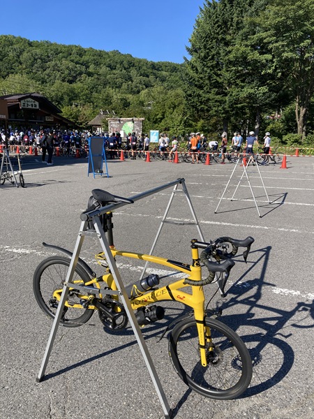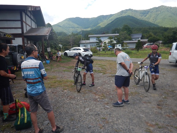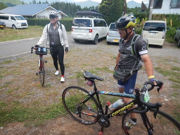見送り組のN田さんとS本さんの自転車は、いずれもフルマッドガードのツーリング車。S本さんは大会に参加はしていないが一足先に乗鞍入し、一昨日に山頂の畳平まで上っている。