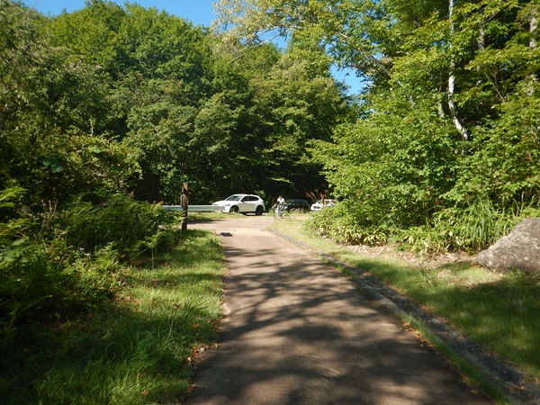乗鞍BASE(いがやレクリエーションランド)近辺で車道に出た。一ノ瀬園地と県道84号線に向かうサイクリングロードと交差したが、方向が違うので車道で番所の宿まで下った。あちこちで蕎麦畑に白い花が咲いている。