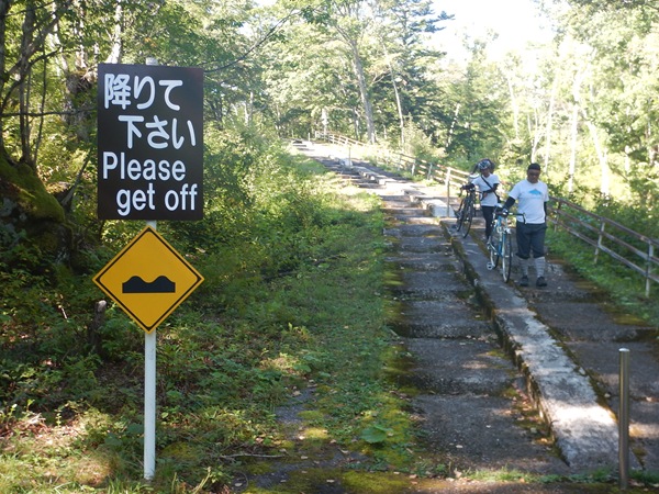 なぜかサイクリングロードに階段と、「降りて下さい」の看板。スロープを押し歩きで下る。全員、歩けるシューズ(SPDまたはフラットペダル)で良かった。