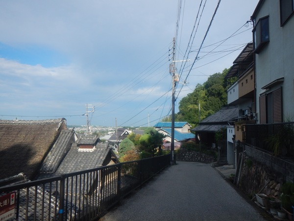 国道166号線に並走する竹内街道を上っていくと、旧山本家住宅から勾配が増すが、振り返ると大阪平野を見下ろせるなかなかの景色。