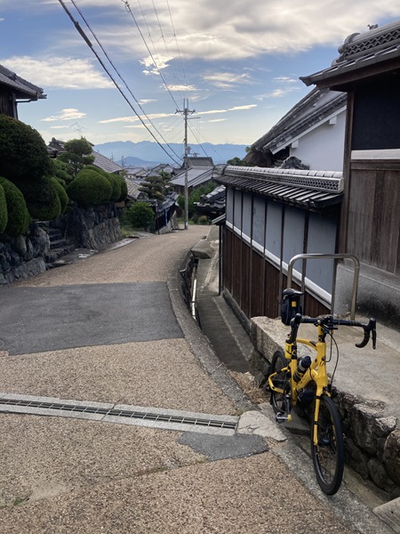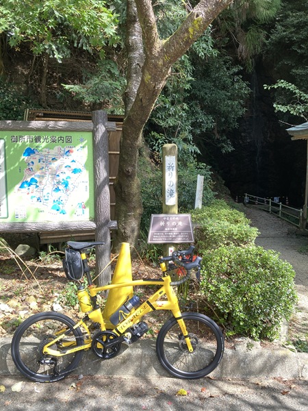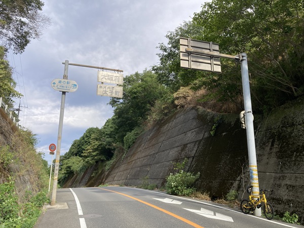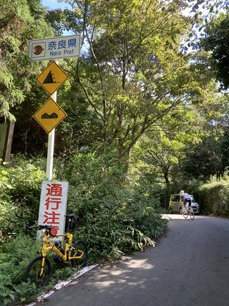 葛城市から御所市に入って小林地区で葛城山ロープウェイから降りてくる県道213号線に合流し、今度は坂を下っていく。ひと下りした櫛羅地区で東進していく県道を離れて引き続き山沿いに南下していくと、分岐に石の道しるべと彼岸花(曼珠沙華)の風情ある取り合わせ。近辺にはこの道が「葛城の道」である現代の案内板が立っており、この辺りをちょくちょく走っていたことを思い出した。700Cで走り回っていた頃は時々辿っていた古道だが、ダートやハイキング道の区間もあるので小径車で全走は厳しい。今日もつまみ食いだけ通過した。