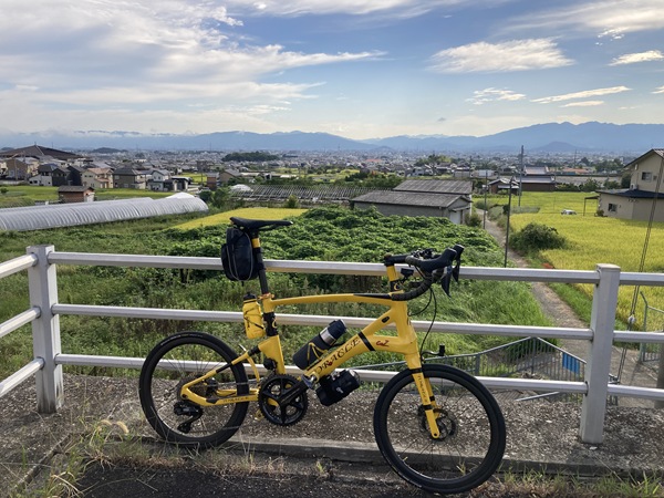 恐らくハイキングのアプローチ用だと思うが、峠に面白い仕様の自転車が駐めてあった。アンカーのMTBフレームだろうか? ブルホーンハンドルにバーコン、Vブレーキでなくカンチブレーキ、20年ほど前のパーツを中心に、ランドナー、クロスバイク、グラベルと行った新旧の既存カテゴリーに納まらない、オン・オフ両用のマルチパーパス仕様に仕上がっている。