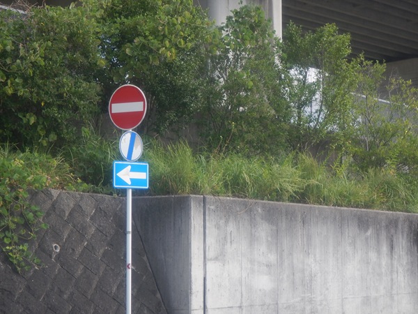 葛城IC付近で南阪奈道路をくぐったら、珍しく「自転車を除く」が無い一方通行標識が立っており、先に進めない。やむなく少し引き返して道の駅かつらぎの導入路に入った。
