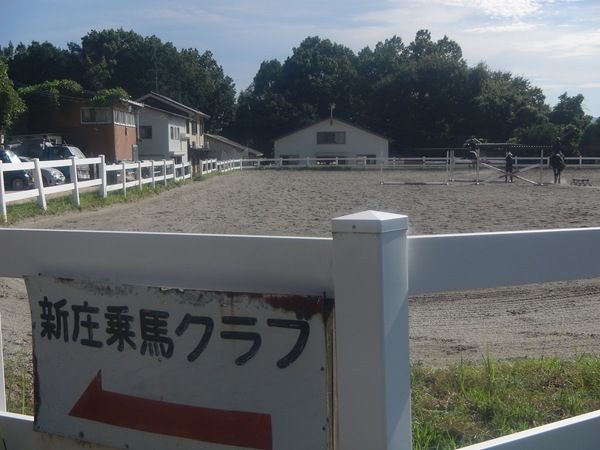 葛城山麓公園の入口の前を通過して坂を上っていき、平岡集落の山手を過ぎて、山口集落の下をすぎる辺りに乗馬クラブがあった。その先には他の乗馬クラブの案内看板があり、この辺りはそういう地区らしい。
