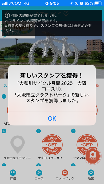 2コースの重複スポットなので、通算98、99個めの大和川サイクル月間2005のスタンプを獲得。