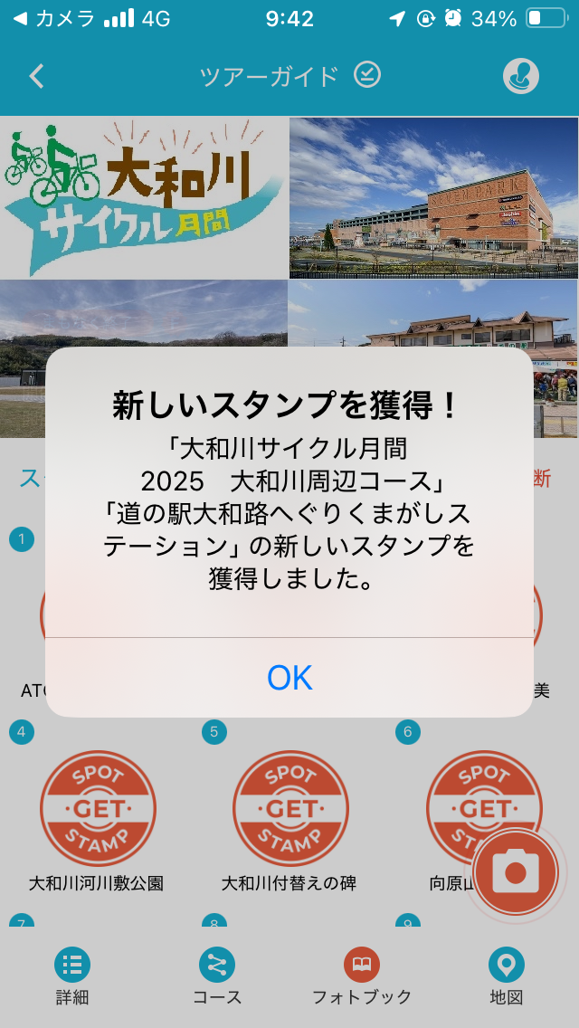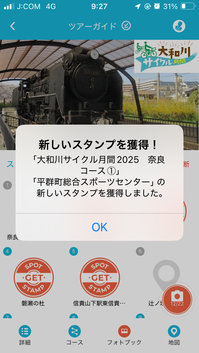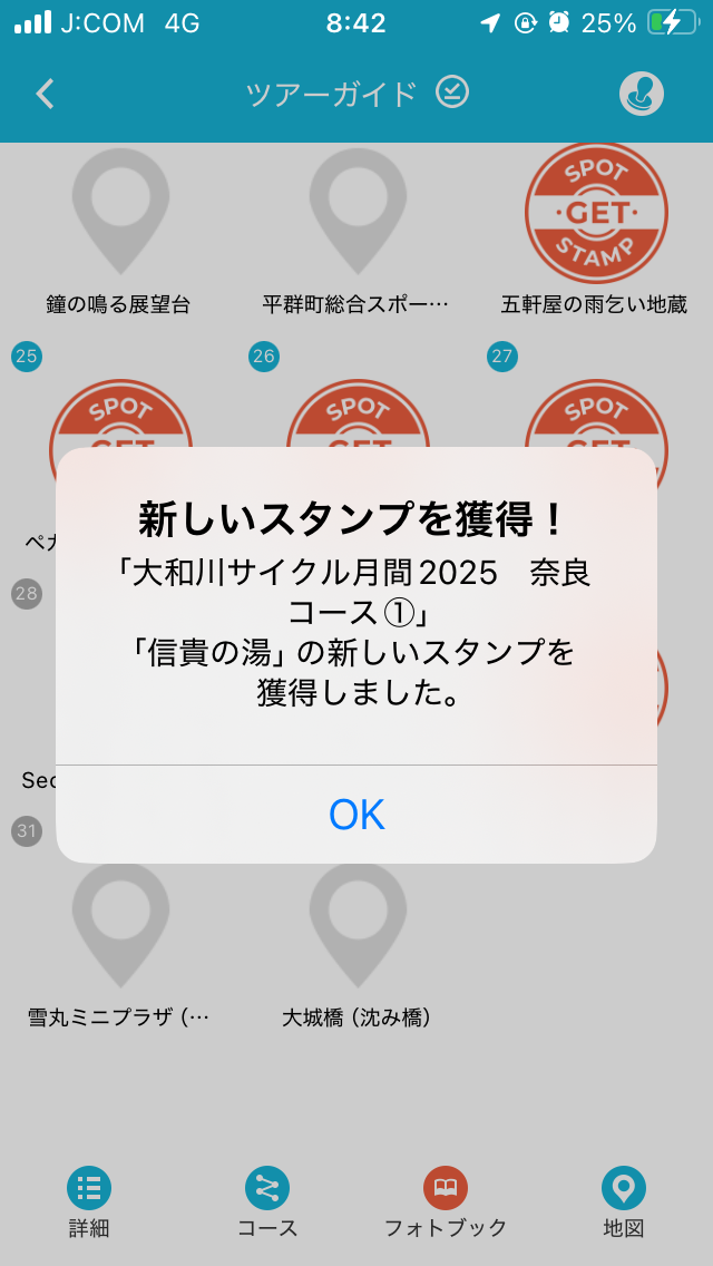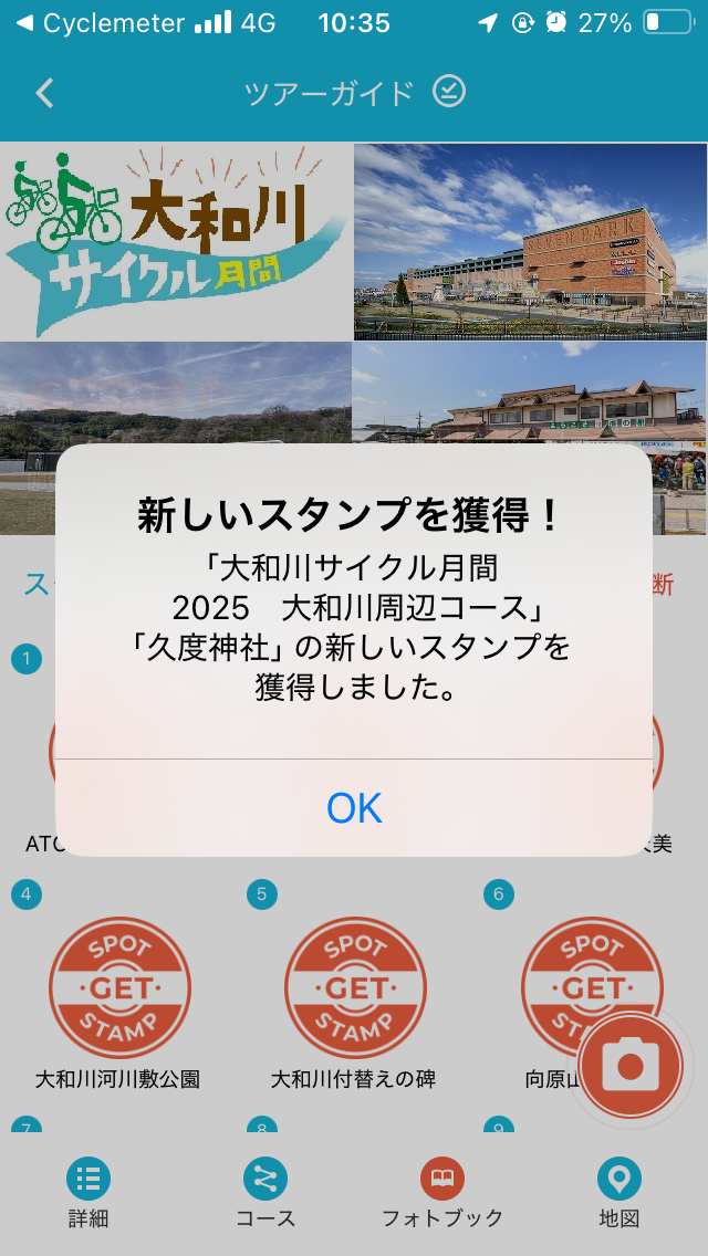 2コースの重複スポットなので、通算116、117個目の大和川サイクル月間2025のスタンプを獲得。