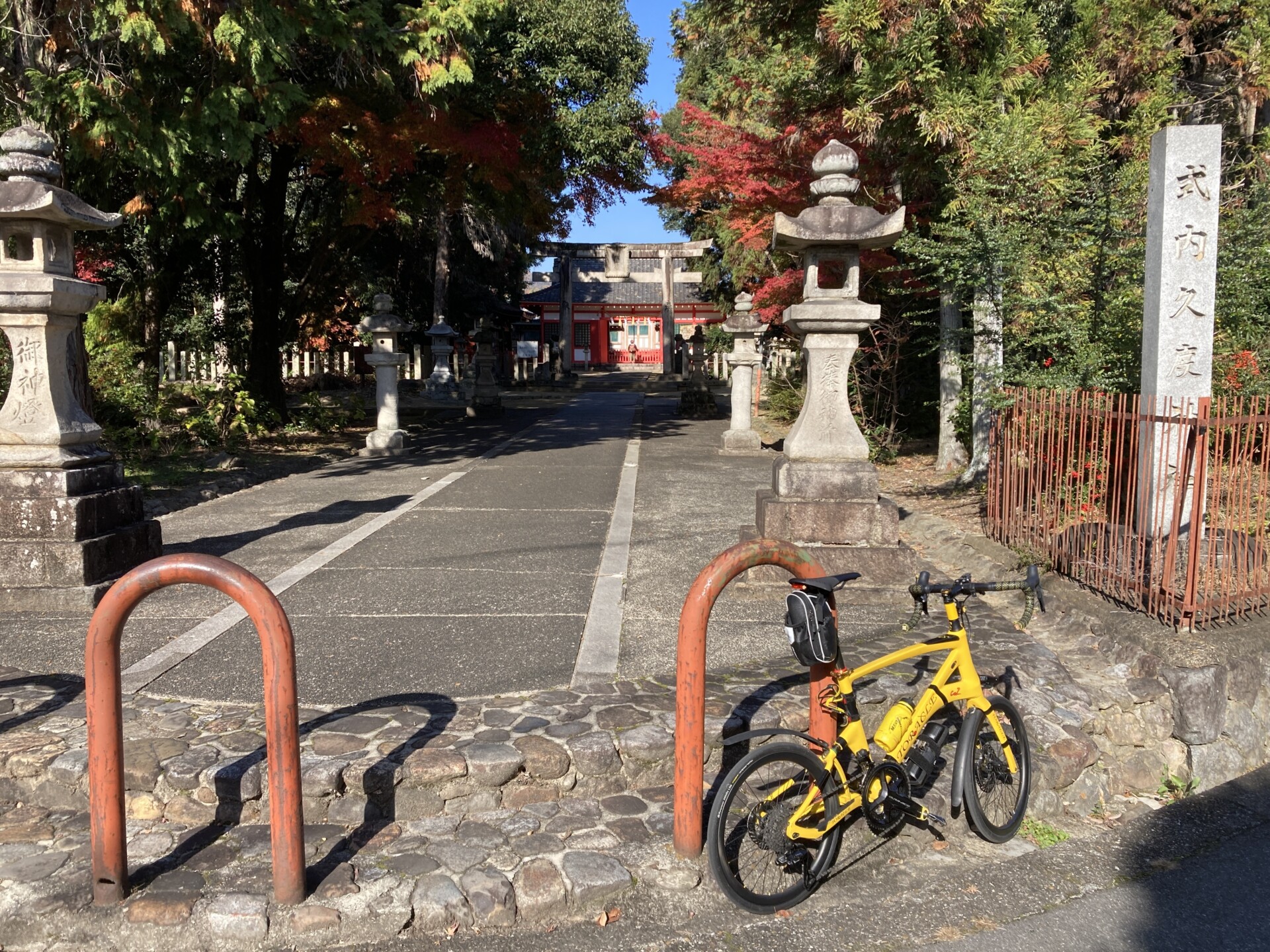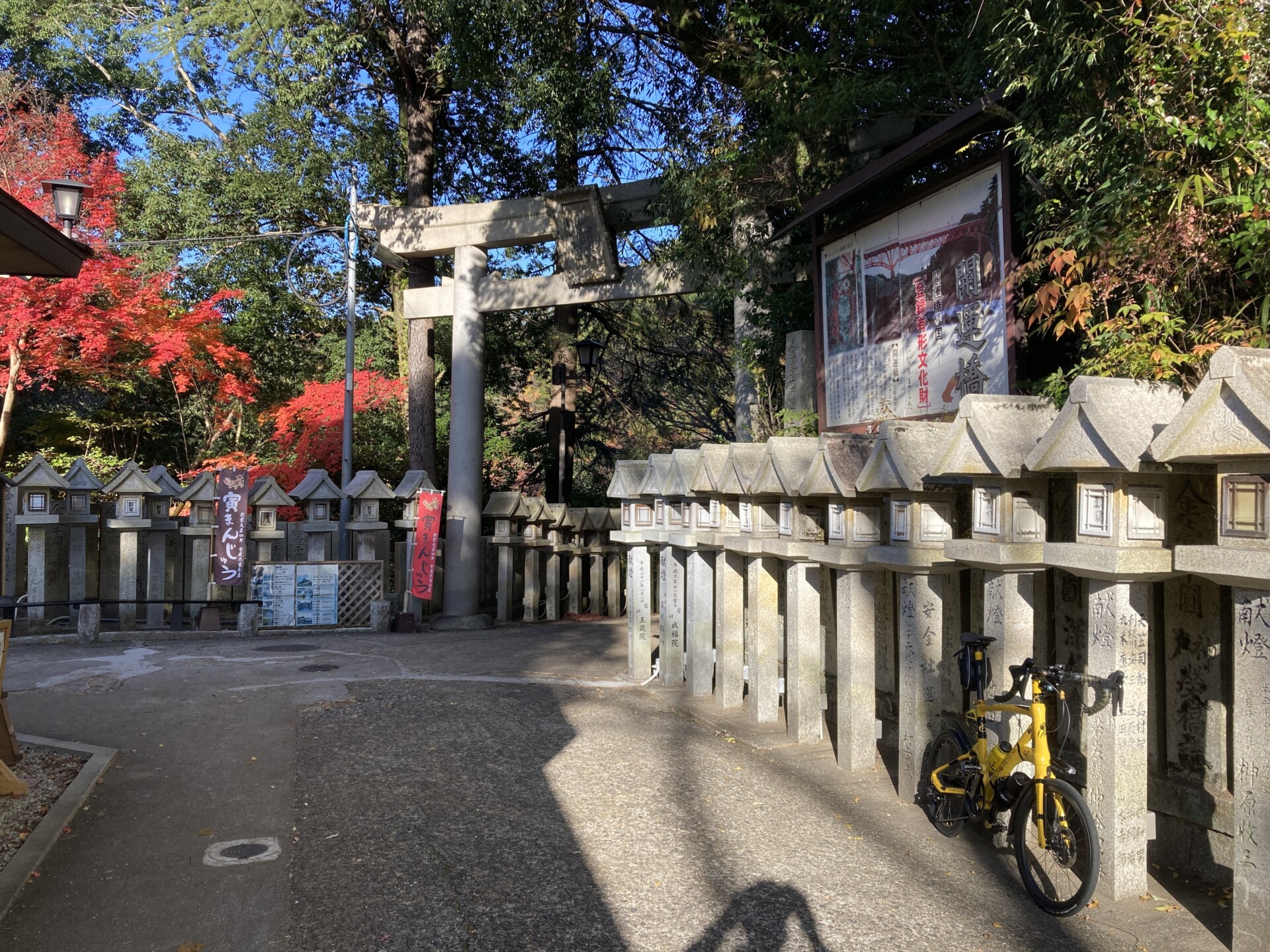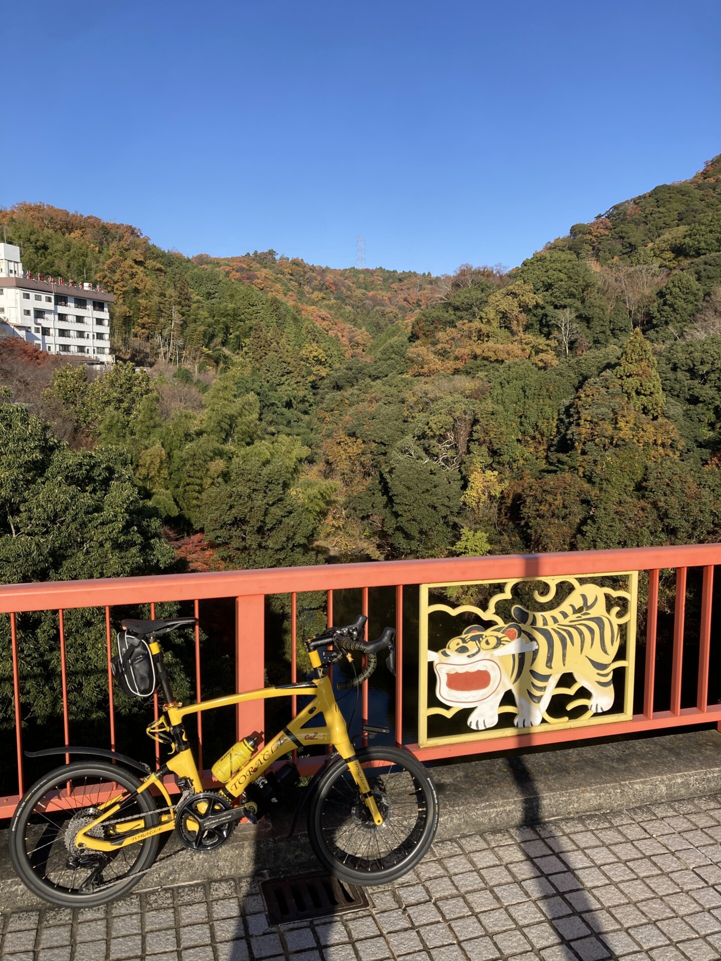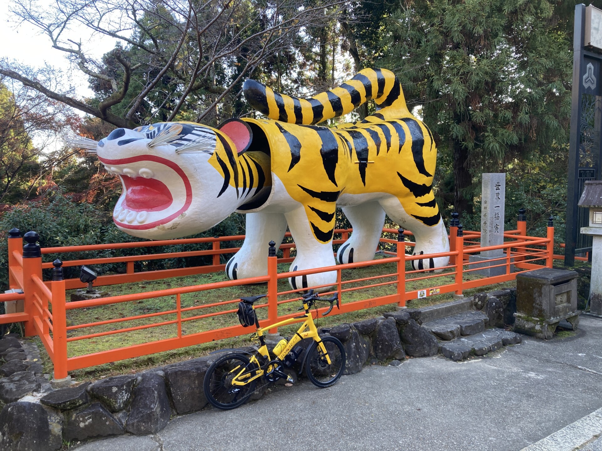 階段を上った先にある本堂に乗車して到達するのは不可能だし、押し歩きでもSPDシューズで到達するのは難行だと思われた。とりあえず近づけるだけ近づこうと「大虎(世界一福寅)」の前で記念撮影してからTORACLE-COZ2を押して進んでいく。