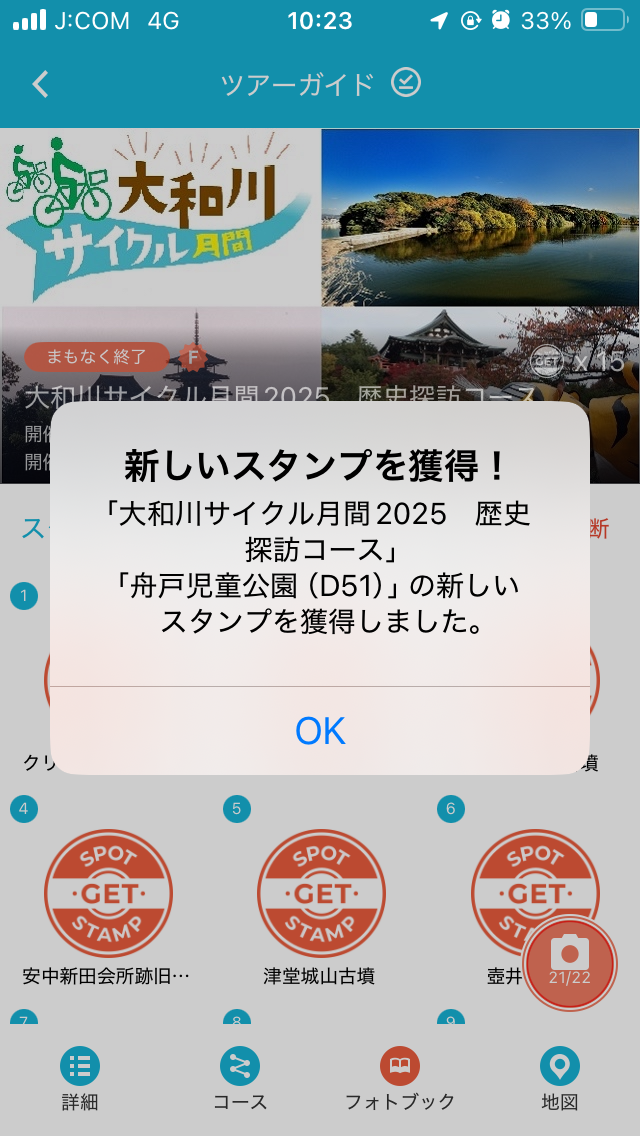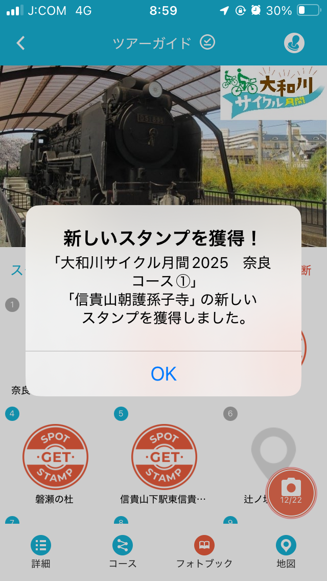 2コースの重複スポットなので、通算128、129個目の大和川サイクル月間2025のスタンプを獲得。