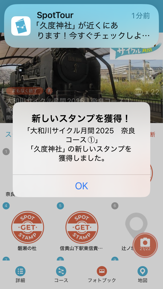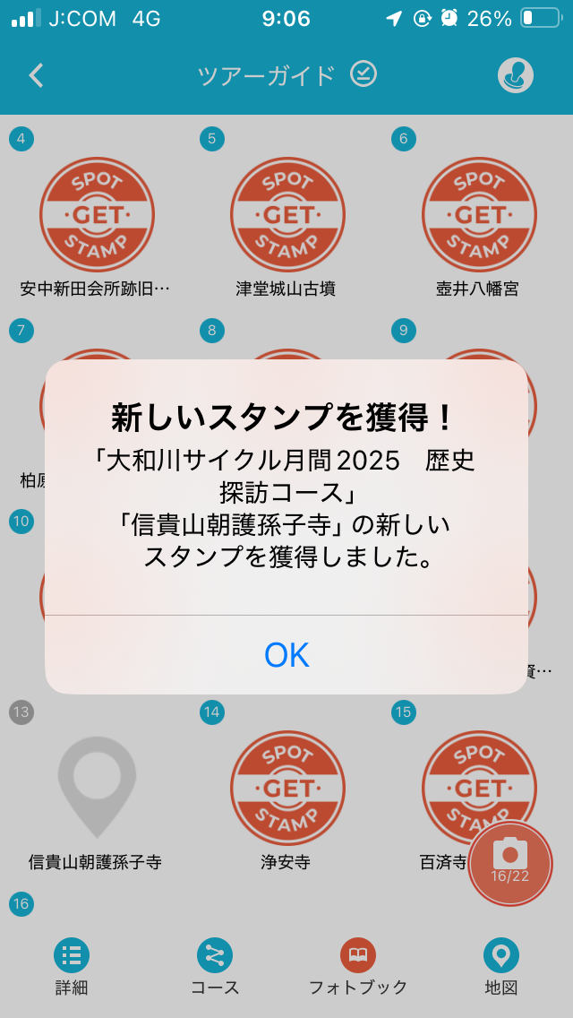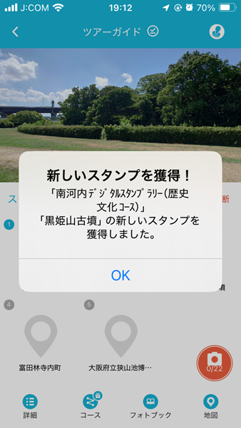 さらに自宅に近づいたところで、その時には気が付かなかったが、南河内デジタルスタンプラリーの黒姫山古墳のスタンプを自動取得していた。このスタンプラリーにも近日中に取り組むつもりだ。