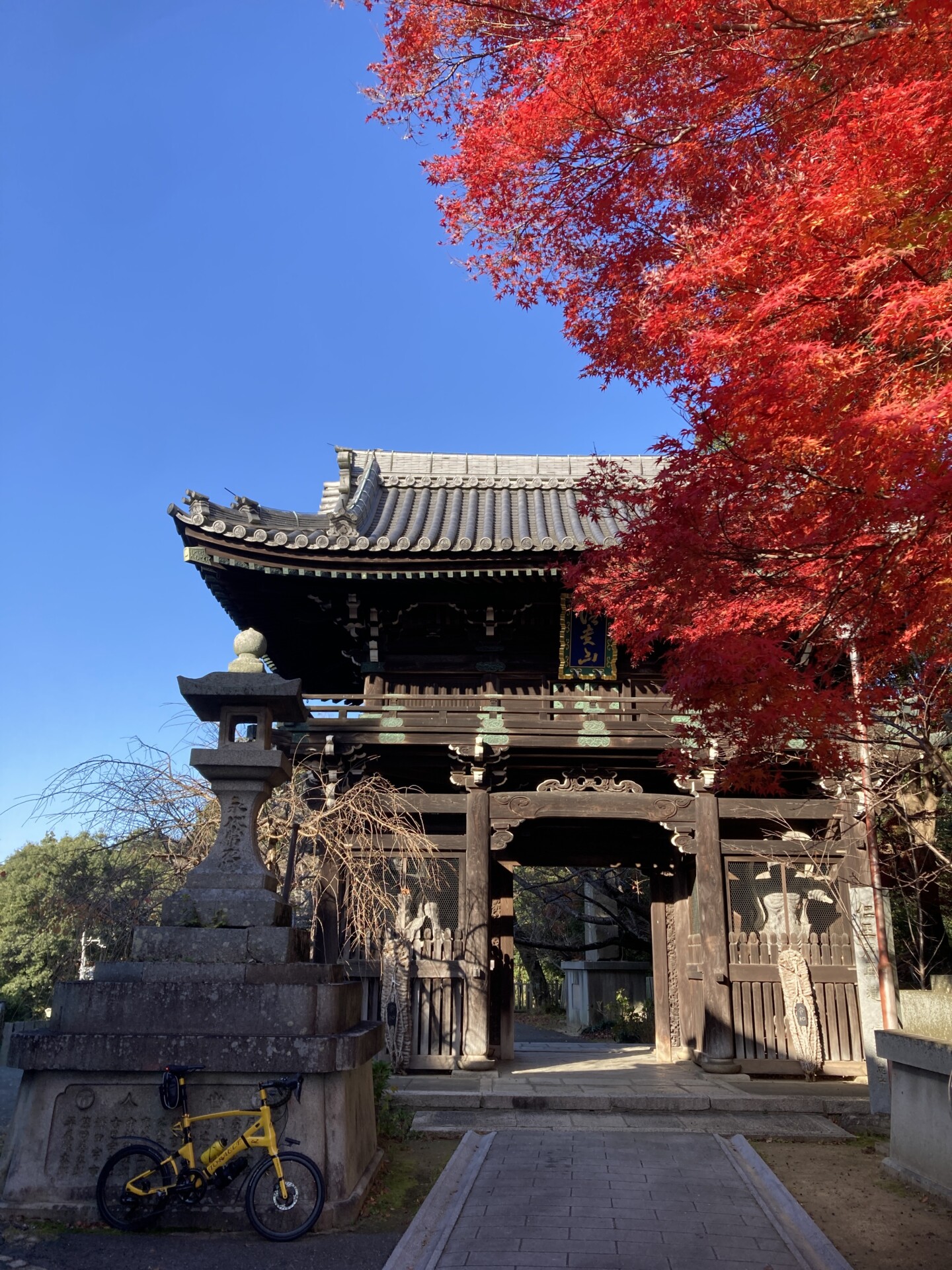 早朝に比べるとすっかりぽかぽか陽気の中を家路に着き、途中で通りかかった道明寺の紅葉と銀杏が見事だった。神仏習合により道明寺天満宮と一体化していたものが、明治時代の神仏分離により西隣の現在地に移ったとのこと。