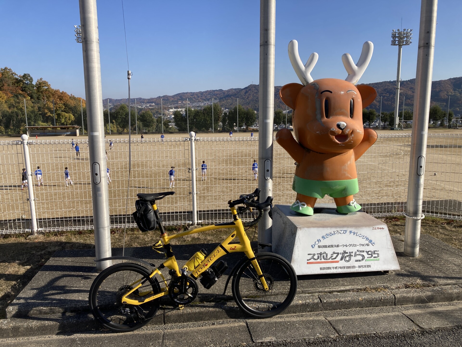 信貴山から約5km走って9:27に平群町総合スポーツセンターに到着。時間的にも標高的にもここまで来るとかなり暖かい。