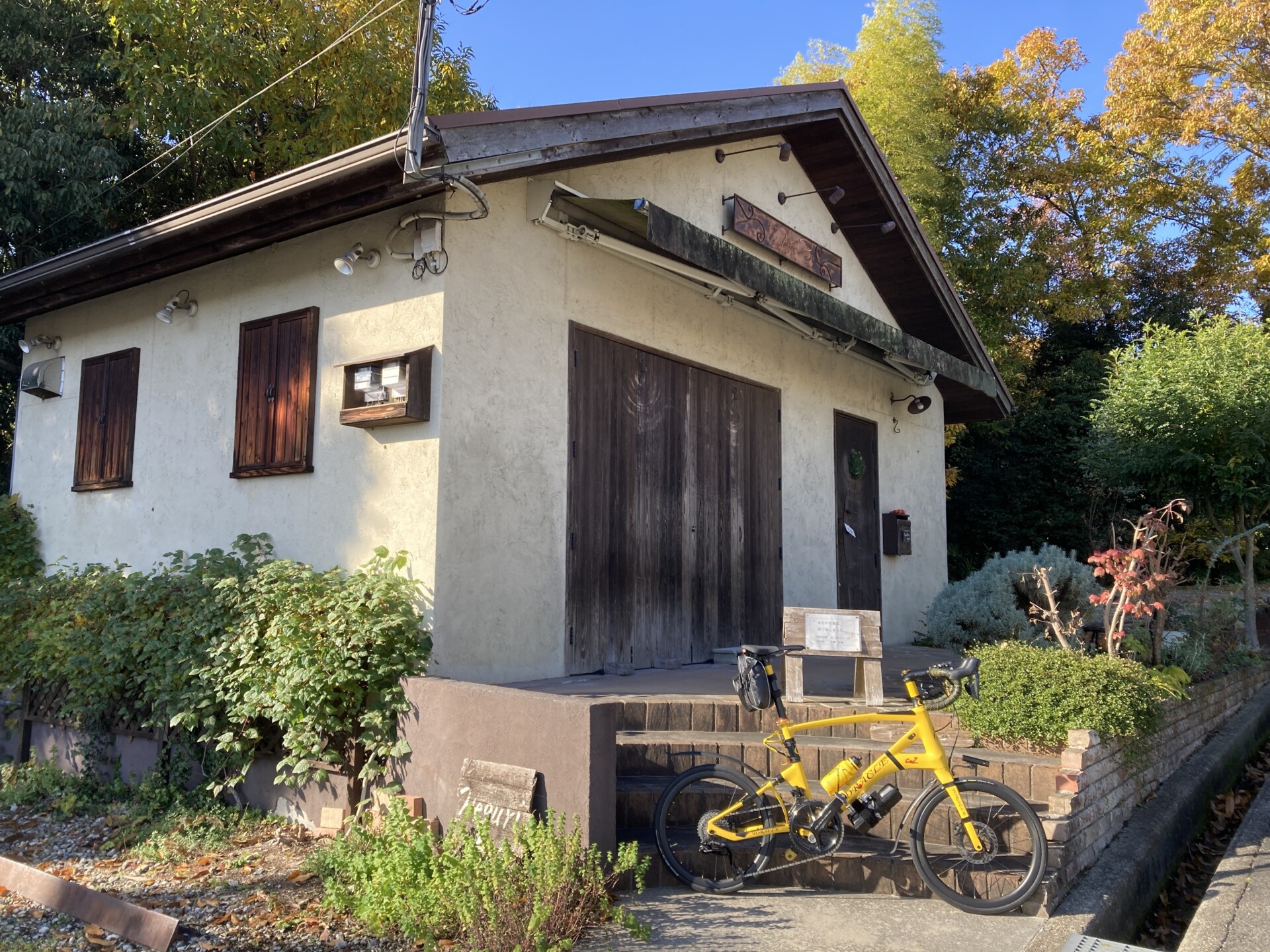 700m下ったところにあるバラ専門店HEGURI ROSEに9:31着。日曜定休なので、人の気配がなかった。