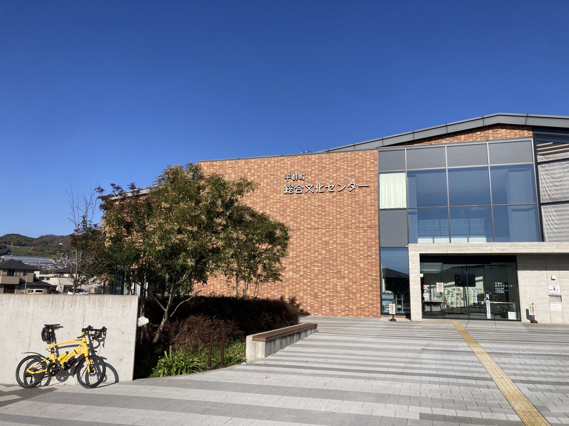 1.3km下って、9:36に近鉄平群駅前の平群町総合文化センターへ到着。前述の信貴山サイクルロゲイニング2022でスタート&ゴールになったところだ。