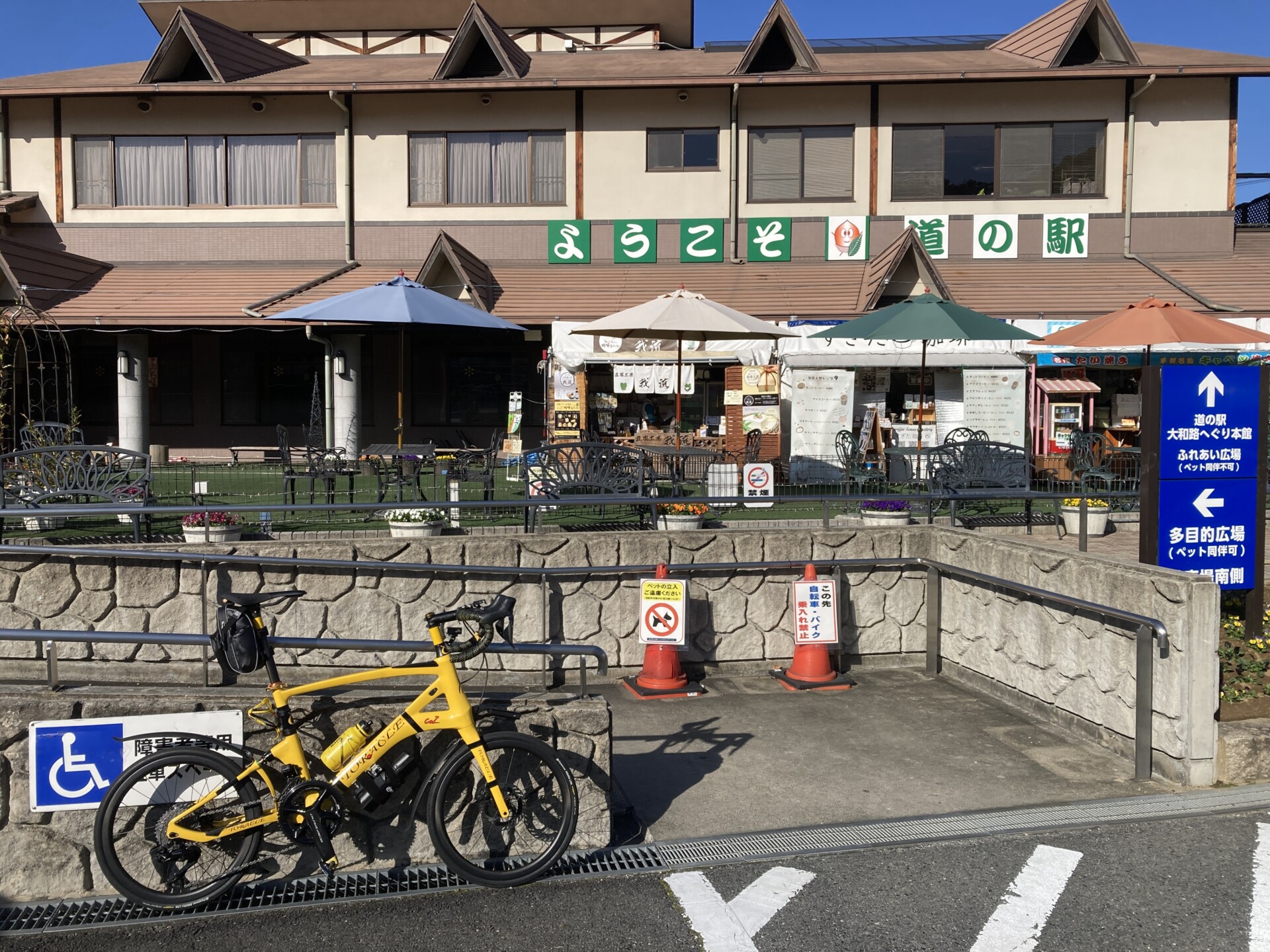 1.2km南下して道の駅大和路へぐりくまがしステーションに9:42到着。携行食をかじって小休止。