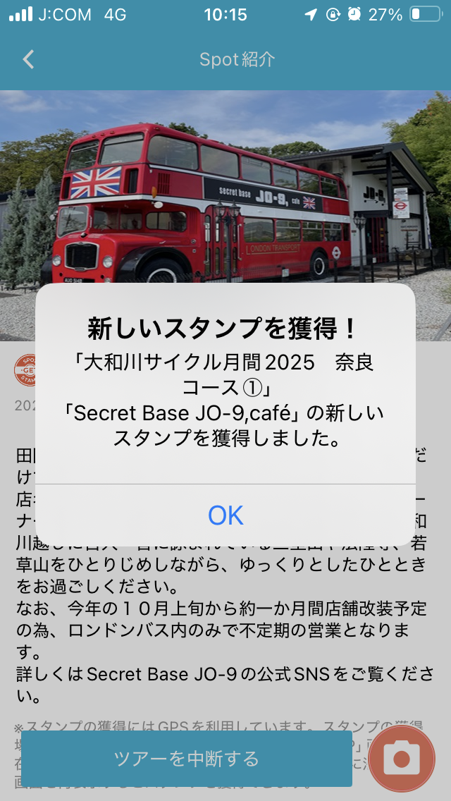ここで通算123個目の大和川サイクル月間2025のスタンプを獲得。
