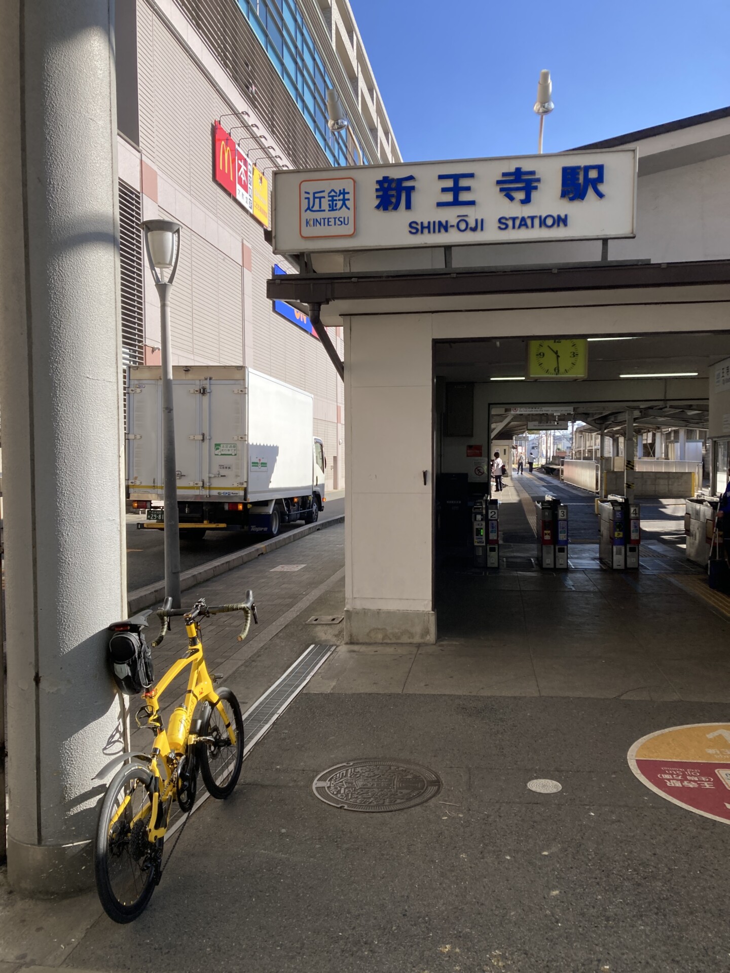 線路沿いに1km西進して近鉄田原本線新王寺駅に10:28到着。JR王寺駅と近鉄生駒線の王寺駅もすぐ側にある。