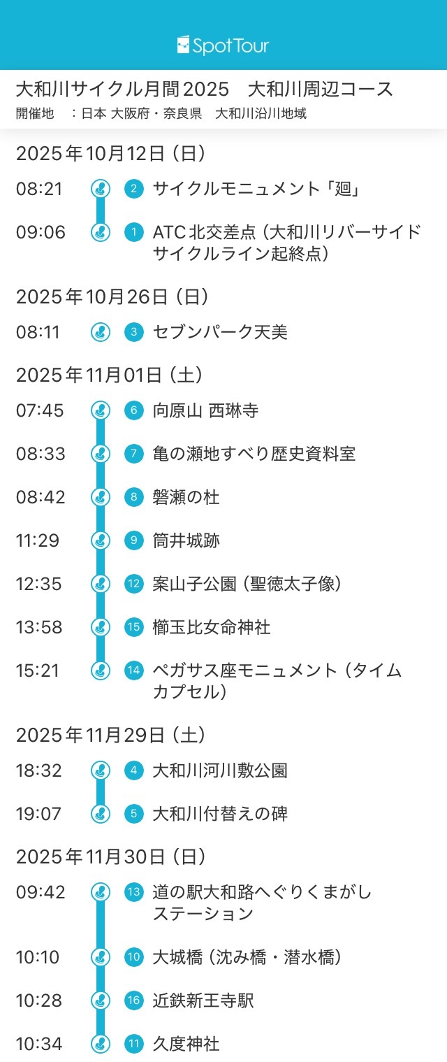 10/8から取り組んでいた大和川周遊サイクルスタンプラリー2025もいよいよ今日が最終日。ここまで通算113個のスタンプを獲得し、残り32個。「自転車に乗ってスポットをめぐって下さい」と記載があるのに、なぜか自転車では到達できない山の上のチェックスポットも2個所あるし、もはや残り一日で完全制覇はどう考えても不可能。それでも、6つある各コースごとの制覇は充分可能性があるし、少しでも獲得率を上げるため、昨晩に続き最後のひとあがきを試みた。