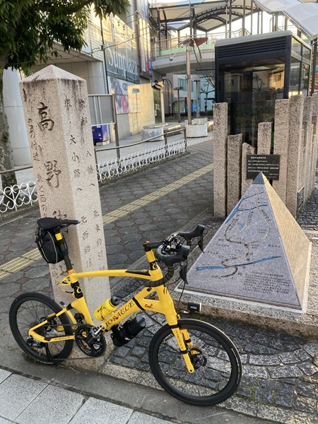 さらに西高野街道を4.8km走って河内長野駅前の西高野・東高野街道合流点モニュメントにやって来たのは7:31。2.5kmほど手前の楠小学校付近に勤務地の松原を通る中高野街道との合流点もあり、東・中・西の主要経路が合流して、ここから高野山寄りは単に「高野街道」と呼ばれることが多いようだ。