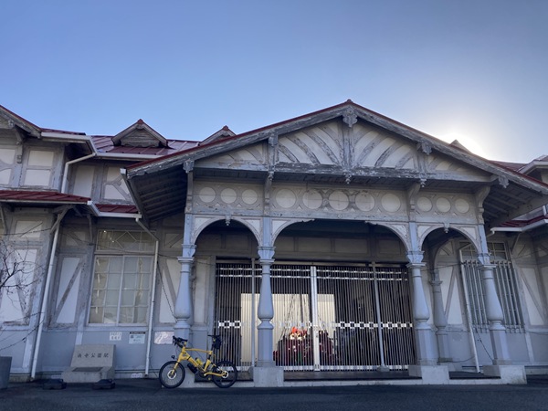 1.9km北上し、諏訪ノ森旧駅舎にやってきたのは9:23。こちらは大正時代の木造駅舎で、こちらも登録有形文化財とのこと。