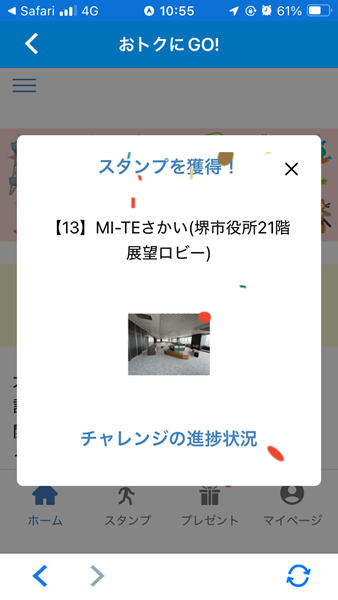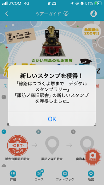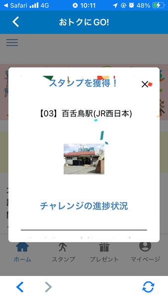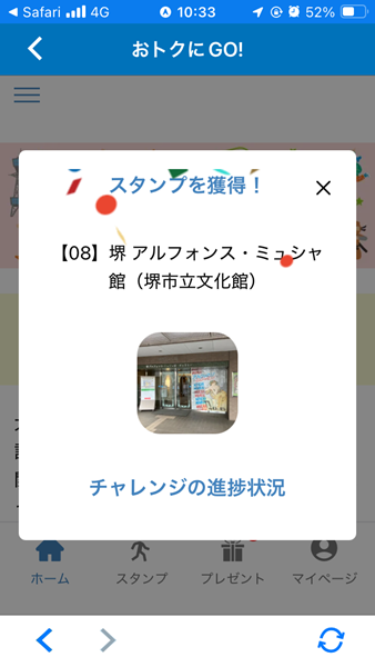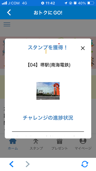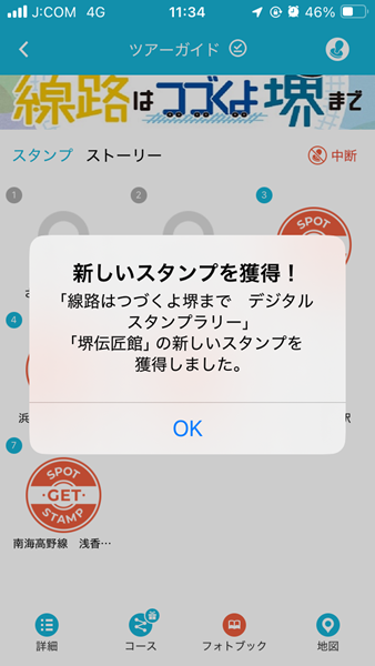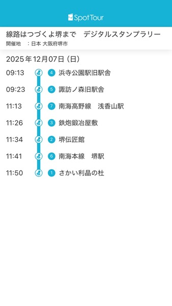 こちらも堺旅2025だが、5つの「駅」スポットは、GPSの位置情報だけでスタンプを獲得できる。ここで3個目を獲得。