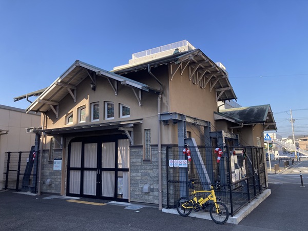 自宅近くを素通りし、一気に海の近くまで14.7km走って浜寺公園駅旧駅舎にやって来たのは9:13。明治時代に建設された駅舎で、登録有形文化財とのこと。