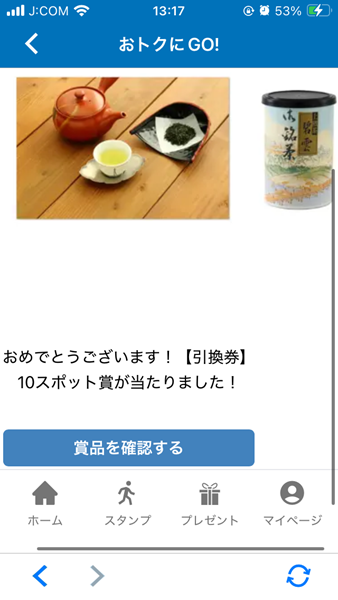 予定より少し遅れたが家路に着き、12:29に帰宅した。昼食後に、先ほど後回しにした堺旅2025の10スポット賞の抽選操作を行った。……あれ、上煎茶「碧雲」が当選してしまった。堺旅はこれまで参加賞以外の当選経験がなかったので、期待していなかった。こんなことなら現地で抽選操作を行い、さかい利晶の杜で景品を受け取ってくれば良かったのだが、後で抽選したから当選したのかもしれない。いずれにしても、残る鉄炮鍛冶屋敷の有料エリアのスタンプを獲得するために、12/25の終了までに堺市中心部を再訪しなくては。